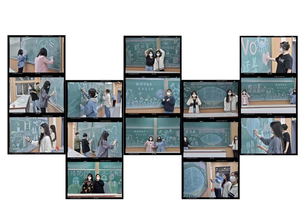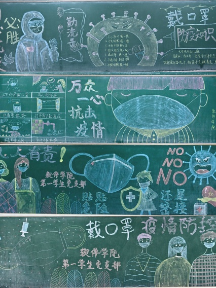 一支粉笔、一块黑板,一份担当、一颗初心。走进辽工一号教学楼自习室,教室前方的五彩黑板报令人醒目。用彩色粉笔书写的防疫知识和“万众一心抗击疫情“,“抗疫必胜”等鼓舞人心的抗疫标语,向大家传递出“不畏艰险永向前”的决心和战“疫”必胜的信心。