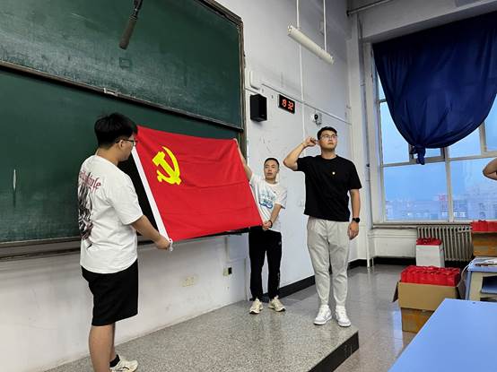 誓言铮铮抒壮志,党徽闪耀映初心。陈博老师带领全体党员重温入党誓词,面向党旗,庄严宣誓:“我志愿加入中国共产党,拥护党的纲领,遵守党的章程......”,在高昂嘹亮的宣誓声中,大家增强了组织观念,坚定了初心使命,表达了为共产主义事业奋斗终身的理想和信念,铮铮誓言在会场久久回荡。