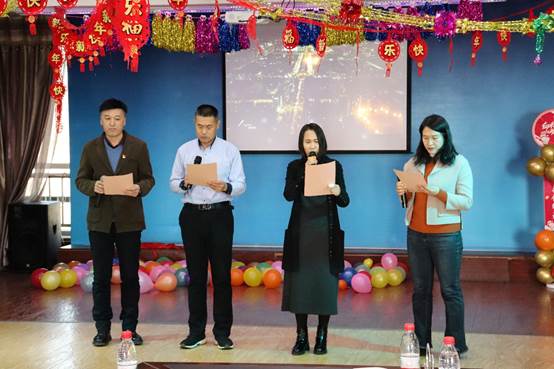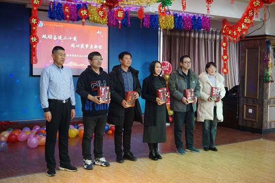 联欢会分五个部分,一是大家共同观看20年来3044永利集团典型活动视频展播;二是公司领导诗朗诵--《我爱我的祖国》;三是教师的才艺表演;四是游戏环节;五是颁奖环节。颁奖环节中,经理谢文阁老师致新年贺词。