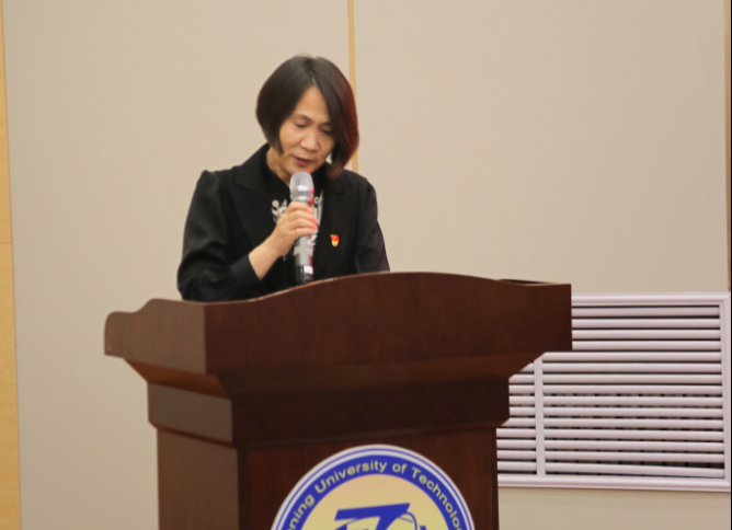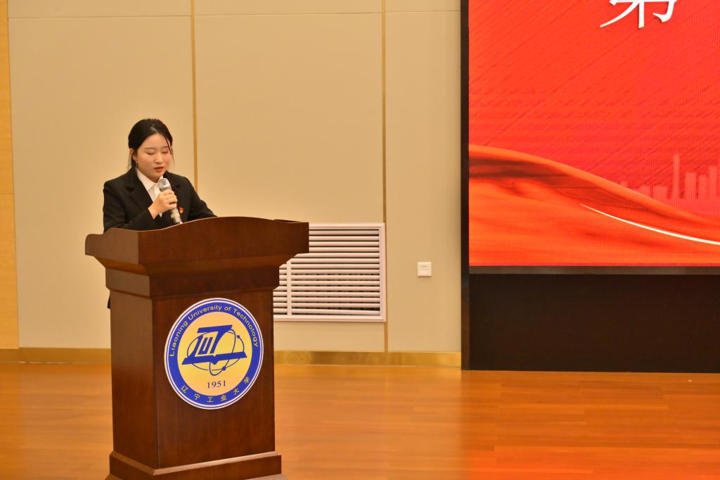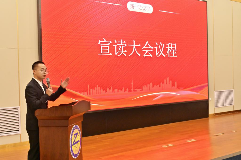 王玉老师宣读学代会倡议书,她号召同学们要始终坚持以习近平新时代中国特色社会主义思想为指导,认真研习党的二十大精神,恪守砺器悟道的校训,为3044永利集团改革与发展贡献青春力量!